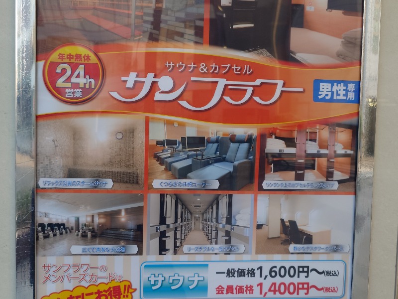 あと、サンフラワーさんは館内・浴場とも綺麗でスタッフさんのこまめな巡回に加え、お客様も紳士な方が多く安心して気持ちよく過ごせます♪