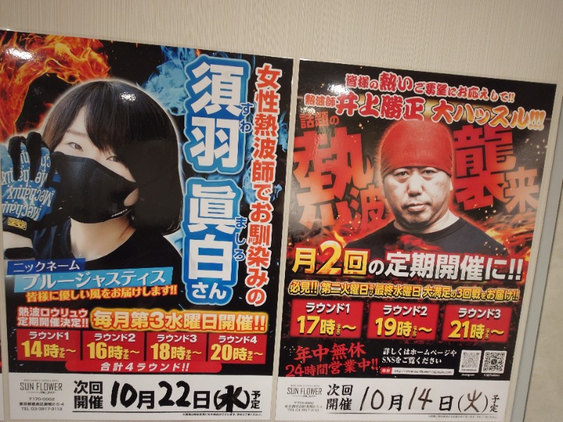 サンフラワーさんで毎月定期開催されている須羽眞白さん熱波イベント参加(遠征)の際、いつも宿泊でお世話になってるサンフラワー巣鴨さん!