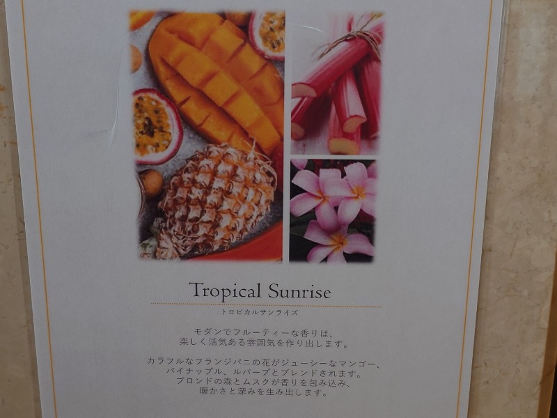 1階で香るフレグランス(トロピカルサンライズ)や🌺🌴館内着(アロハ、ムームー)にピッタリの曲ですね〜♪😚