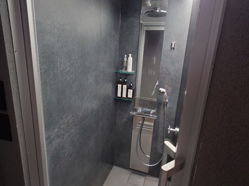 セルフロウリュウで[ほうじ茶×レモングラス]の良い香りに包まれながら自分のペースで蒸された後、オーバーヘッドシャワー(冷たいのが苦手な方は手持ちシャワーで好みの温度で掛け湯可能)でクールダウン→チェアで休憩💤