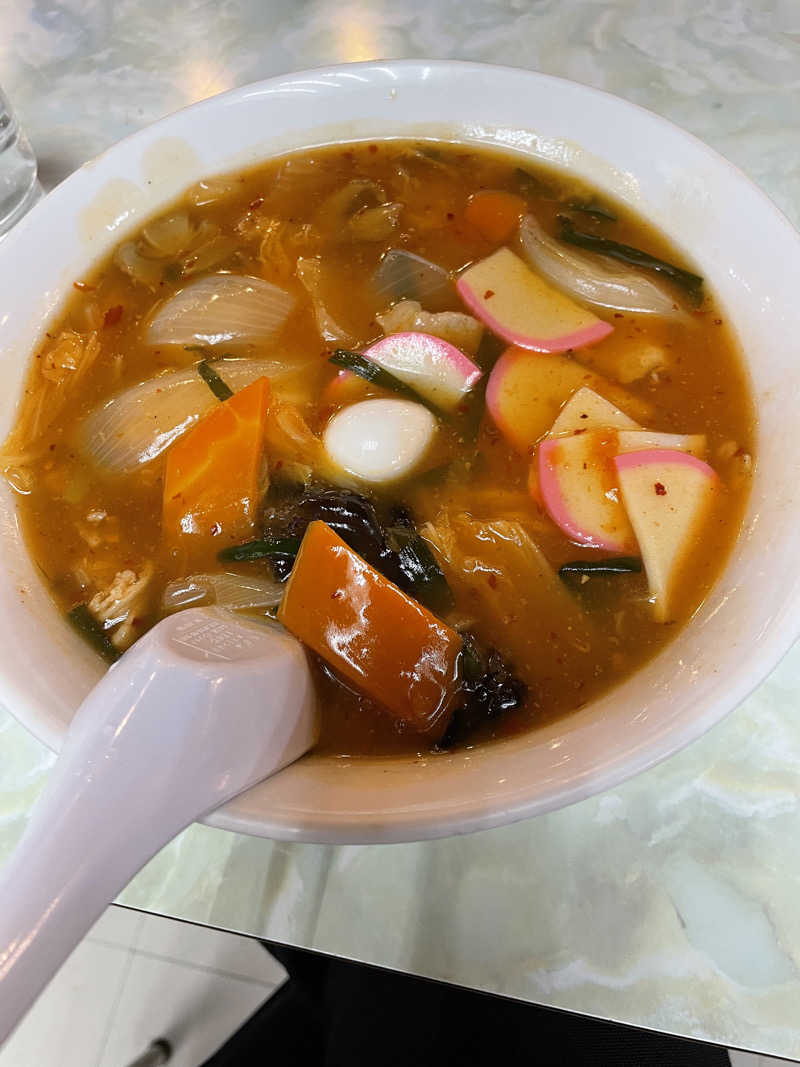 少し辛くて、具だくさんで味は美味しかったけど麺がやわやわ。地域性なのかな。