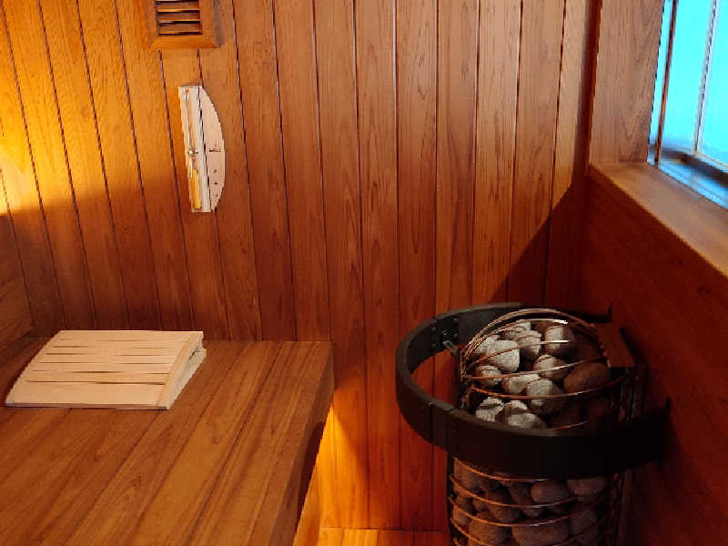 地下にも素晴らしいサウナ施設があり、部屋でもサ活を堪能。最高かよ、この施設。クイーンベッドの部屋以外泊まってないので、他の部屋がどうなのかはわからんですが。奥さんは、大浴場の女性風呂にもロウリュできるサ室あるとのことで、夫婦共に楽しめるのもいい。