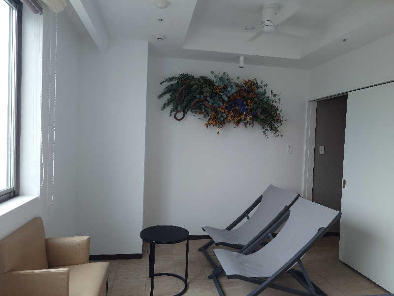 サ室は、私語厳禁のフィンランドと、私語オッケーとあえて書いてあるオートロウリュサウナの2種類。自分はフィンランド派だが、私語オッケーのほうは、ウェルビーさながらのサ室内水風呂あり。この体験が兵庫でもできるのはうれしい。水風呂は、クロスカウンターという、熊本湯らっくすさながらのボタン押して滝のでる水風呂がシングルで強烈。サ室がそこまで熱くないため、シングルは年齢的にきつい。個人的には隣の18度の水風呂でもよさそう。両方とも全身すっぽり入れていい。となりがシングルなので、18度はややぬるく感じる。斬新な体験だったのは、別室のととのいスペースだろう。インフィニティチェアを倒すと、オーロラ(ぼい?)動画を見ながら、扇風機でととのう体験は他ではないものだった。水風呂横にもととのい椅子と扇風機あるけど、できたら別室のととのいスペースを利用したいところ。宿泊じゃない場合は、事前予約になるのも納得。広さ的に、人が殺到すると、体験の良さが半減しそう。その辺もちゃんと計算されているのが、さすが。個人的には、ととのいスペースで私語厳禁の札が欲しい。