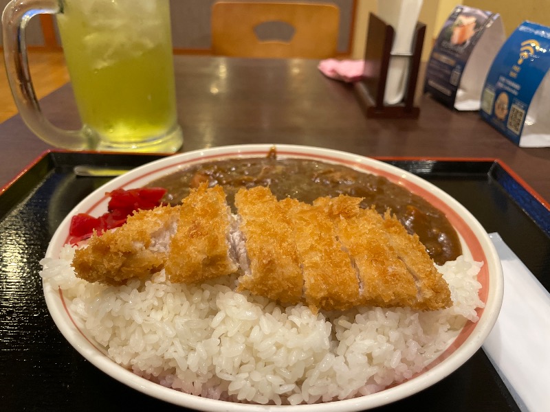 カツカレーを食べると決まっていた。施設の名を関するカツカレーをいただけて満足。酒は踏みとどまり、リアポ(リアルゴールド)をいただいた。