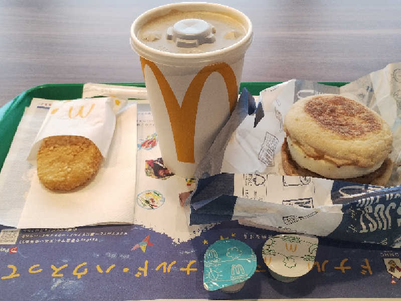 雨の中、20号線沿いの新装オープンのマクドナルドで朝マックの月見マフィンセットを食べました。