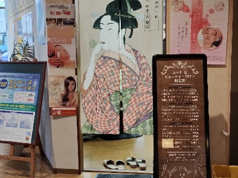 なでしこの湯の説明の看板が撤去されていた。あと、露天の入り口にあったシマトネリコの木がシュロ(?)に変わっていた。