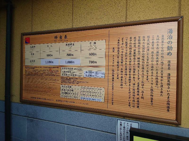 まずは中庭の喫煙所で一休み、館内のオルゴール風BGMとは別に何だかBGMが聞こえる🤔以前はなかった?この二重奏がどうも不快で落ち着かない。そのもう一つのBGMの音源は通路にあった。食事処メニューの上にあるデジタル広告、うん多分これ!帰りも一休みしたけど、やっぱり落ち着かない。