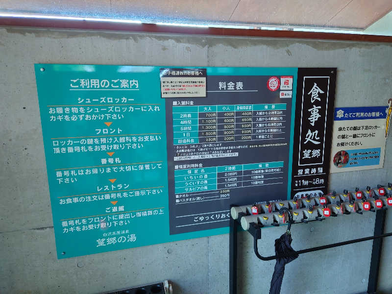 浴場故障で利用不可の代替として、こちらを紹介して頂きました🤗道の駅白沢の中にある温浴施設です♨️タクシーで約25分、徒歩だと絶対無理🤣