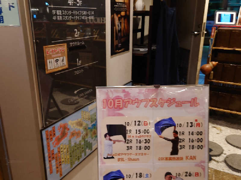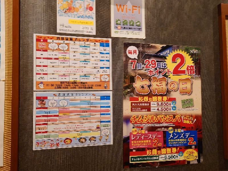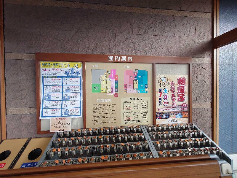 1年半ぶりの再訪です!しきじは今回で3度目の訪問🤗桜湯サウナから歩いて向かいました。20:00入館!すでに落ち着くこの雰囲気はなんだろう🤔駐車場は満車ですが、サウナブーム絶頂期の混雑は見られません。泊券買って施設内へ👍