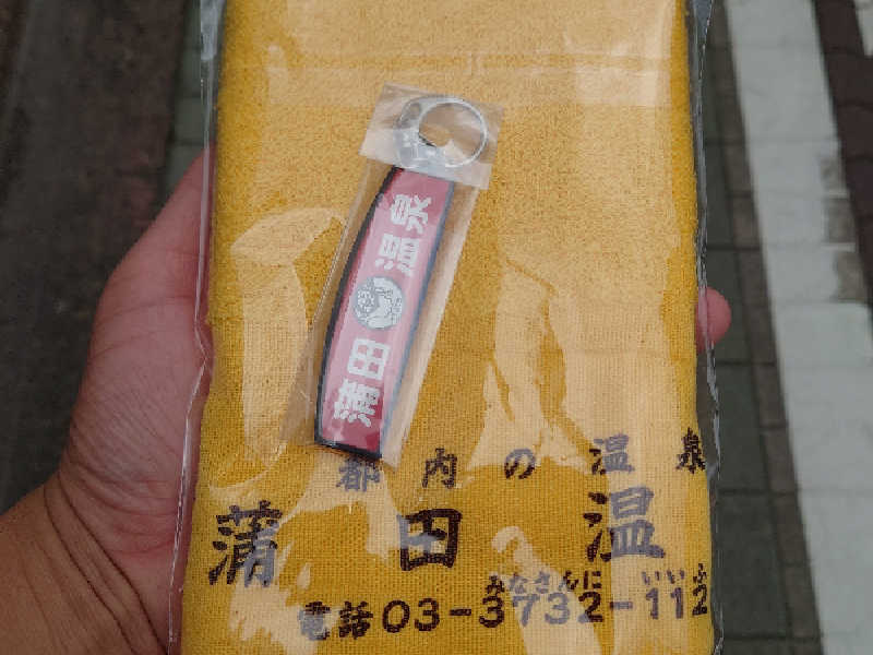 お土産グッズコーナーが充実✨️キーホルダーとジャイアンカラーの蒲田温泉名入タオルを購入🤗