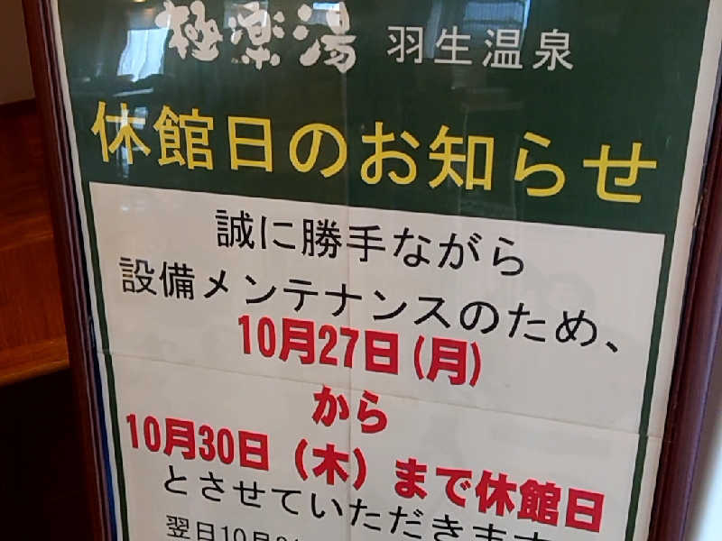 今日は久々に地元の「極楽湯羽生温泉」に訪問、14:50入館!昨日まで4日間休館していました。入ったら色々とビックリ!極楽湯が本気出したみたい🤗