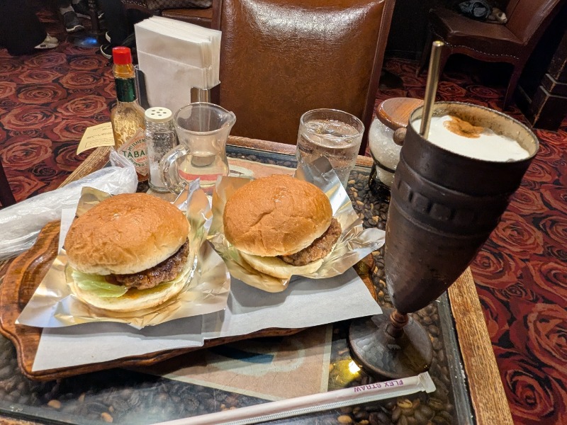 まず大森ルアンでハンバーガー+モーニング+スペシャルアイスコーヒー、平和島餅甚で粒あんおはぎ+芋ようかん、それぞれを載せます…