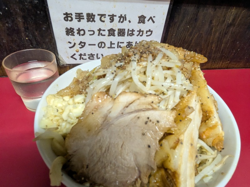 はらどけいで焼き芋大判焼き食ったら半年ぶりの本陣で肉玉そば大盛り。来てみてびっくりデカ過ぎ!ラーショの中盛みたいな皿じゃないか(笑)