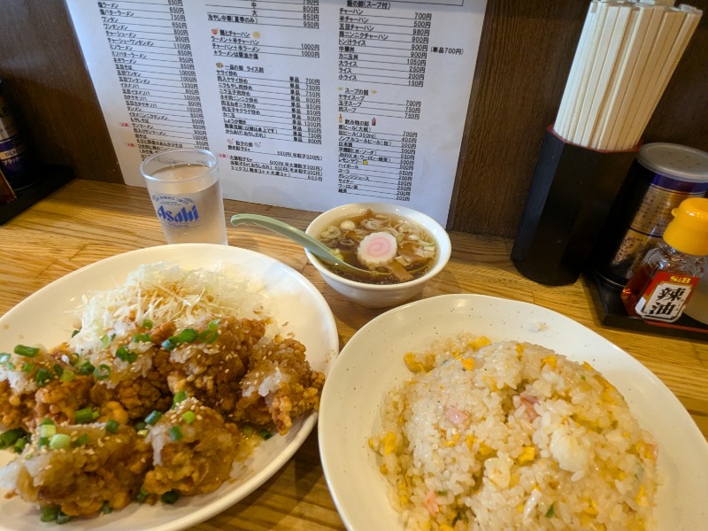 チャーハン+唐揚げ。ニンニク効きまくりの唐揚げ最高、チャーハンは安定の旨さ。