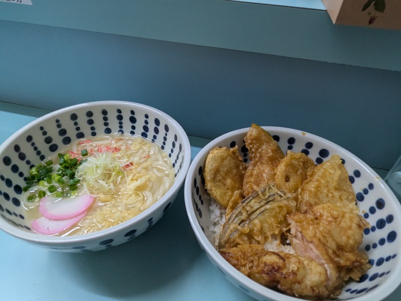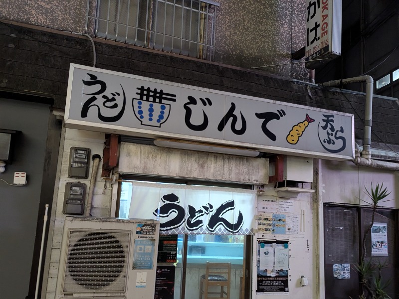 途中で気になってた夜しか営業しないじんでで冷すだちうどんと天丼を食う。