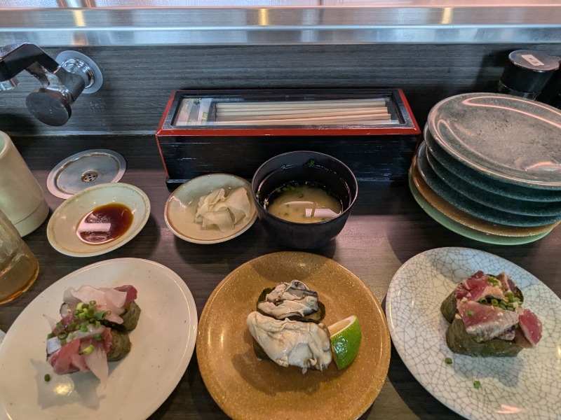 合わせて限定のトロブツがあるのでこれとヒラメ、蒸しカキを頼む。