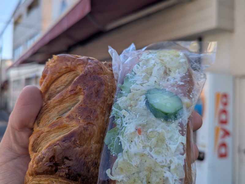 せっかくの休養タイムが…(泣)予定が完全に狂ったのでヤケクソになり池上十字路のタカラヤでポテチサラダパン+スイートポテトパイを持ち帰りで(帰ってから食べました)。