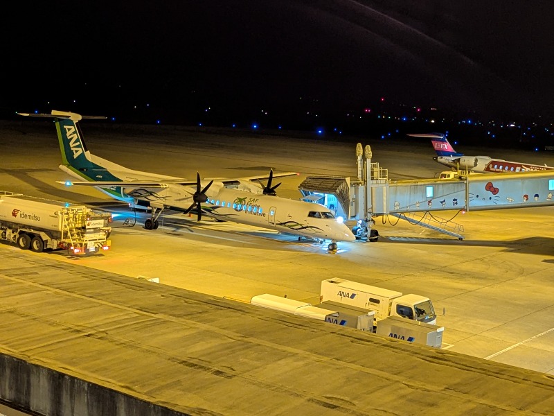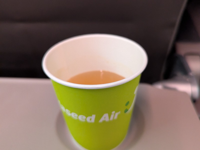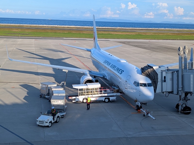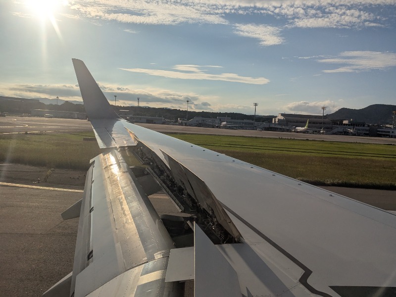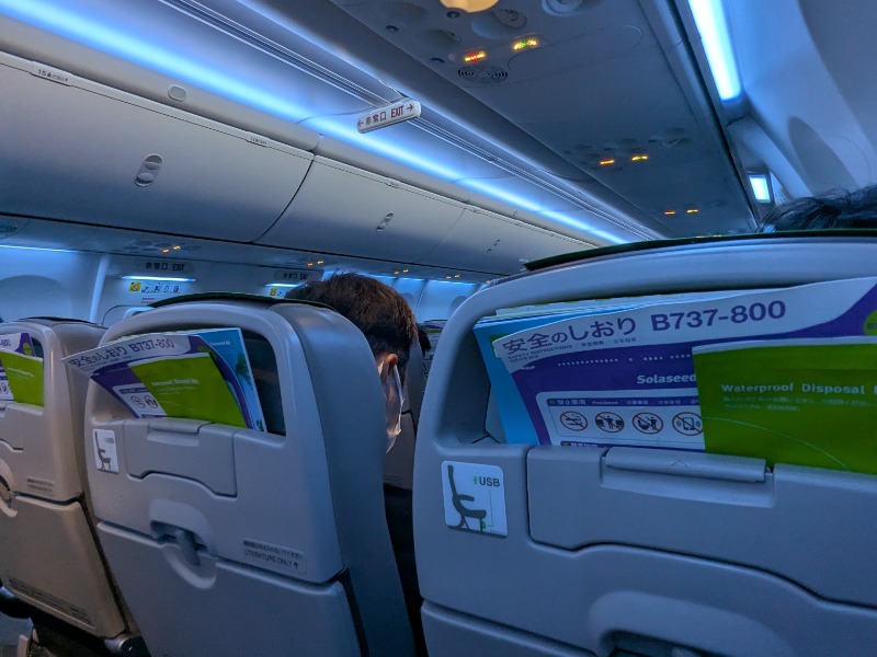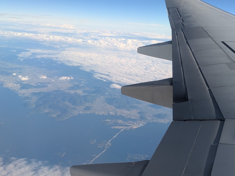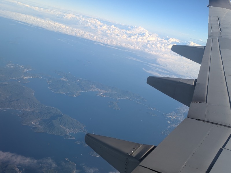 飛行機に搭乗し再度爆睡、瀬戸内海上でようやく起きる(笑)