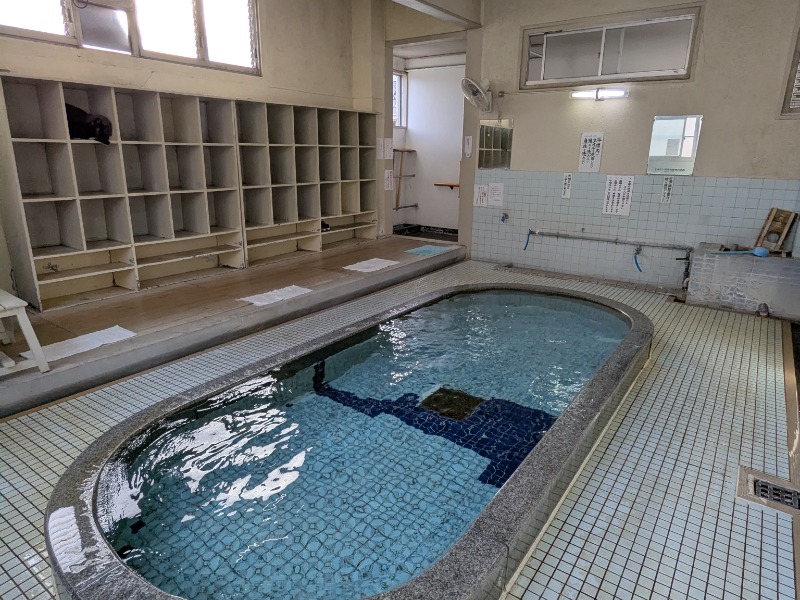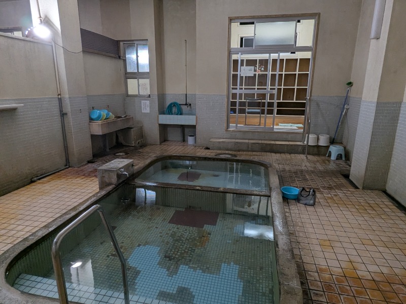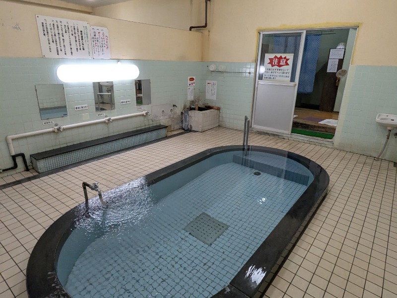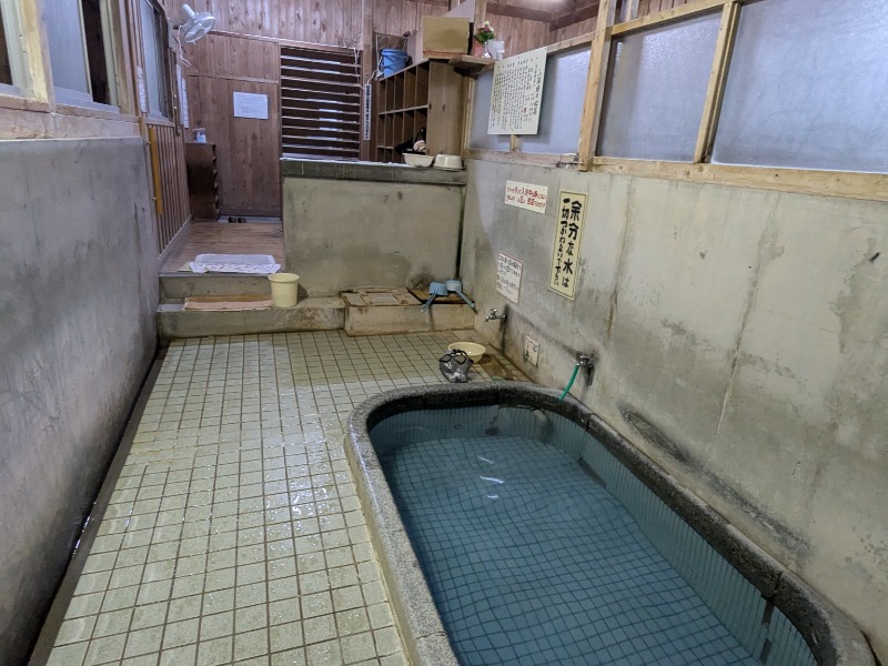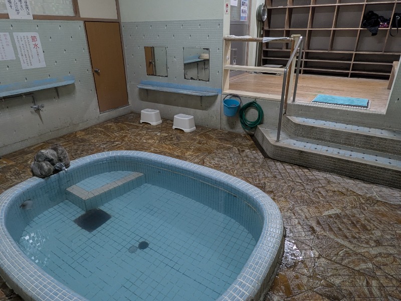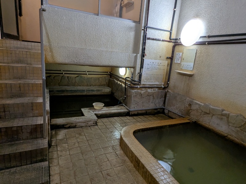 あつ湯の熱源側から熱い湯が出ており44℃程、ありがたい!途中から来た4人組の学生達がアチ〜アチ〜言ってうるさかった。温湯あるんだから入んなきゃいいのに。