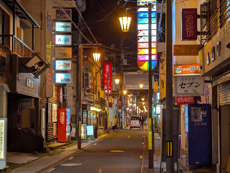 45℃のあつ湯に0時の閉店まで30分間浸かって宿へ戻る。