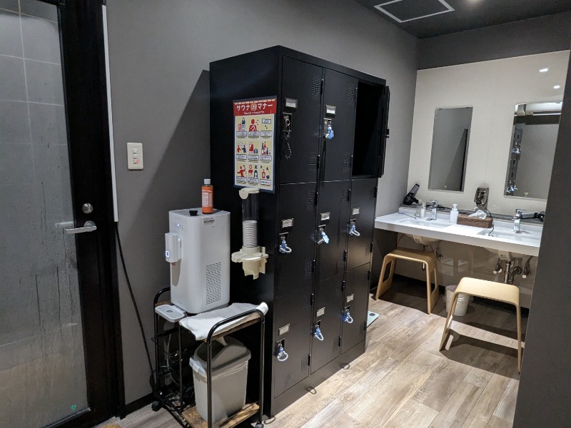 仕方ないのでそのまま中へ。脱衣場にウォーターサーバーは嬉しい。