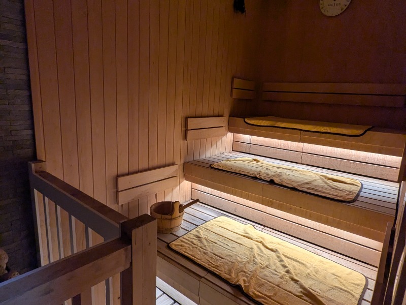 サウナもドーミーインで見るようなサウナ、セルフロウリュが出来て何となくカラカラさも感じる。