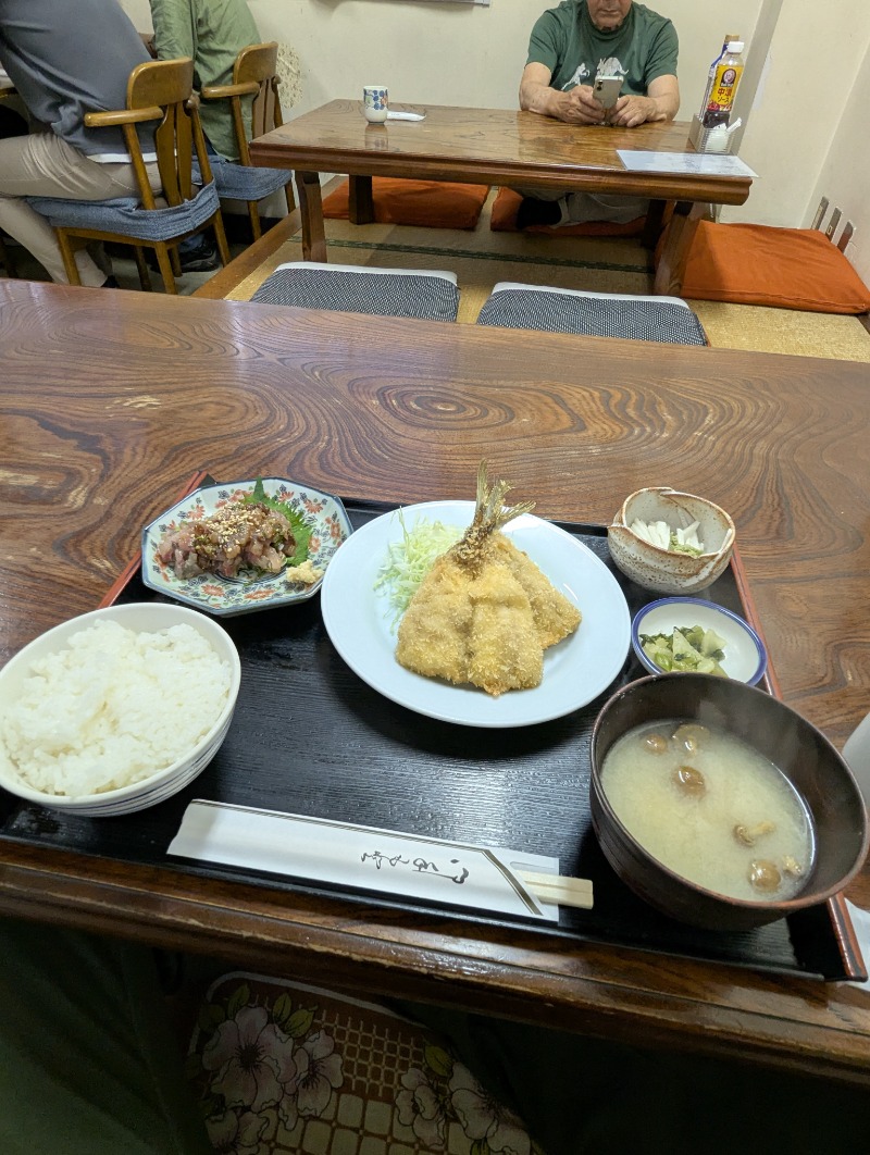 でもその後はスイスイと目的地まで。先ずは飯、うまいよと聞いていた小田原漁港の港のごはんやさんでアジを食べる。