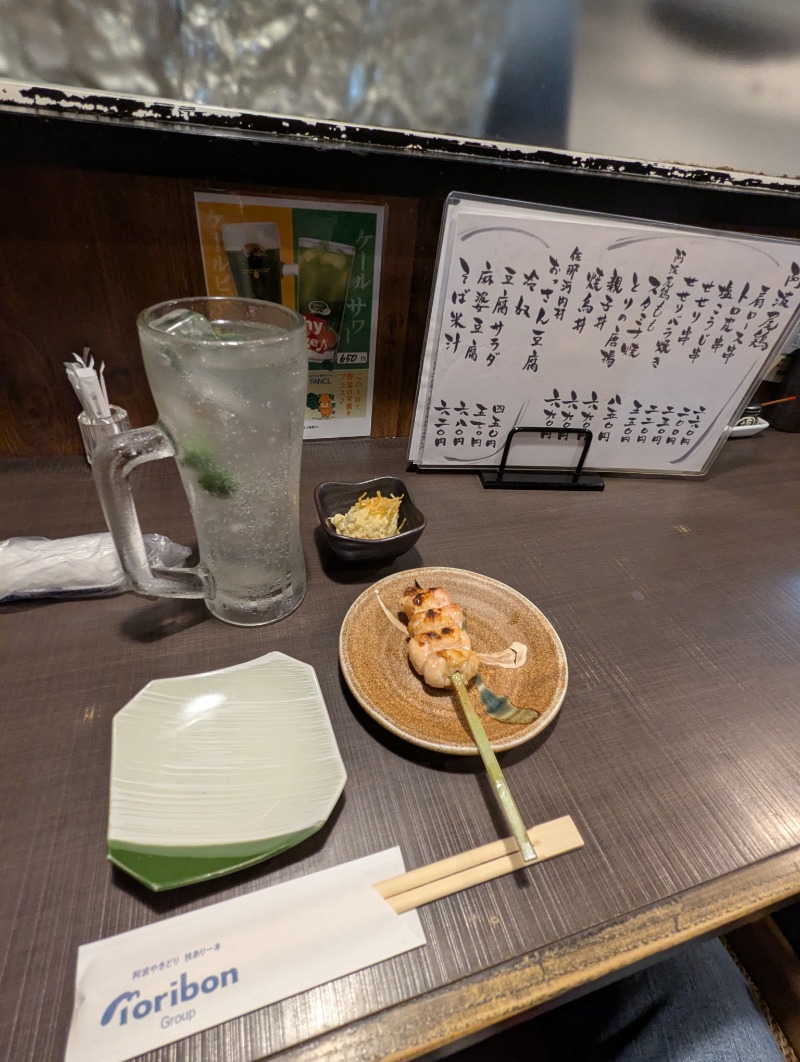すだちハイを頼んで焼鳥を数本。結構前に食べてたから大分腹はいっぱい、もうちょっと食べたかったけど仕方ないな(泣)