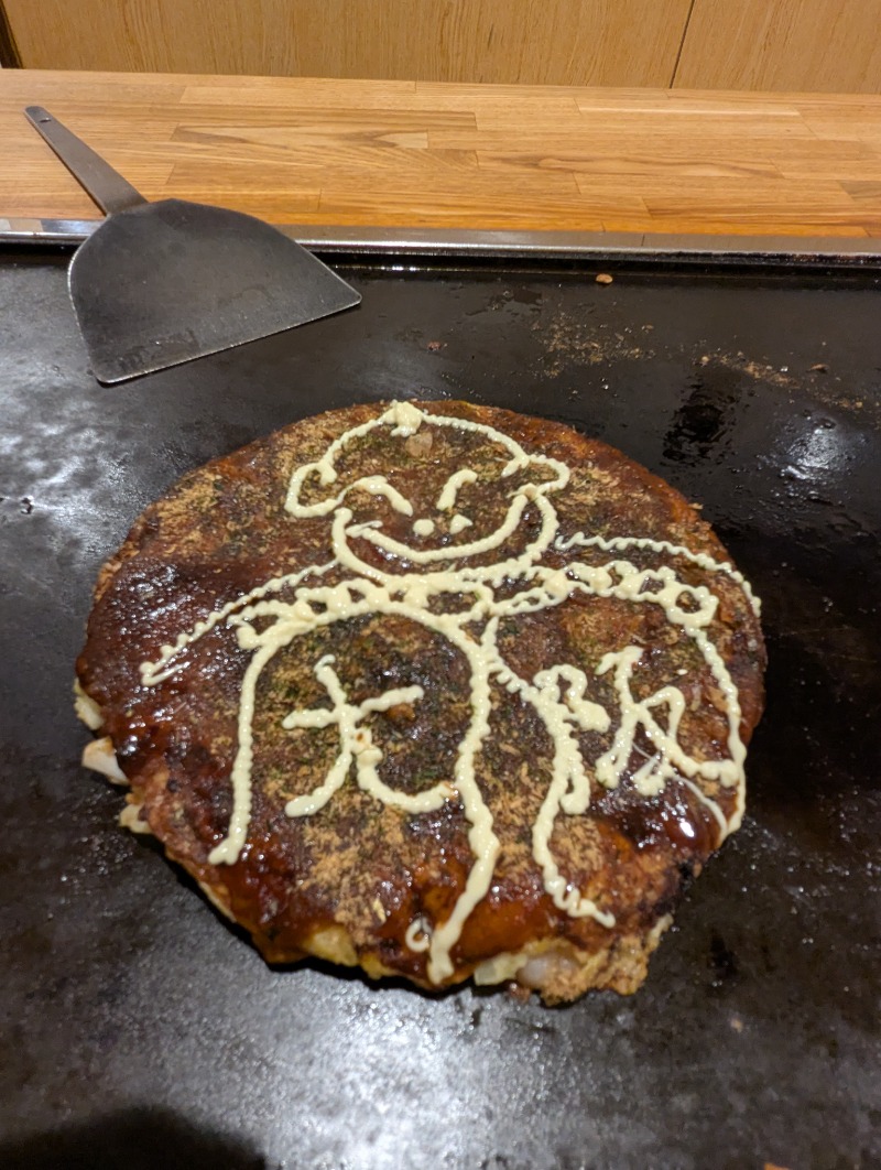 スペシャル頼んで名物のマヨアートを体験、ボリュームもさることながら実に滑らかで美味しいお好み焼き。