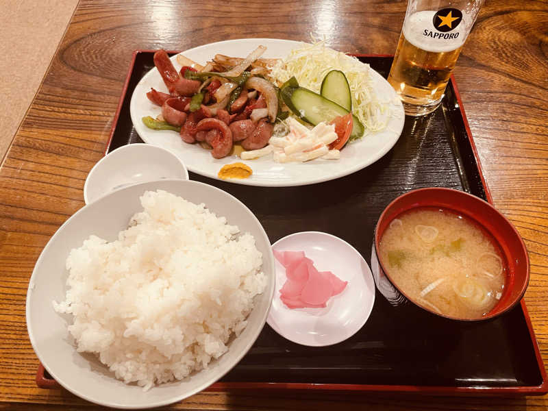 夜の回終了後は食堂にて夕食andおビールを少々🍻