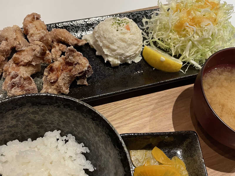 夕食は唐揚げ定食とはんぺん定食をシェア✨