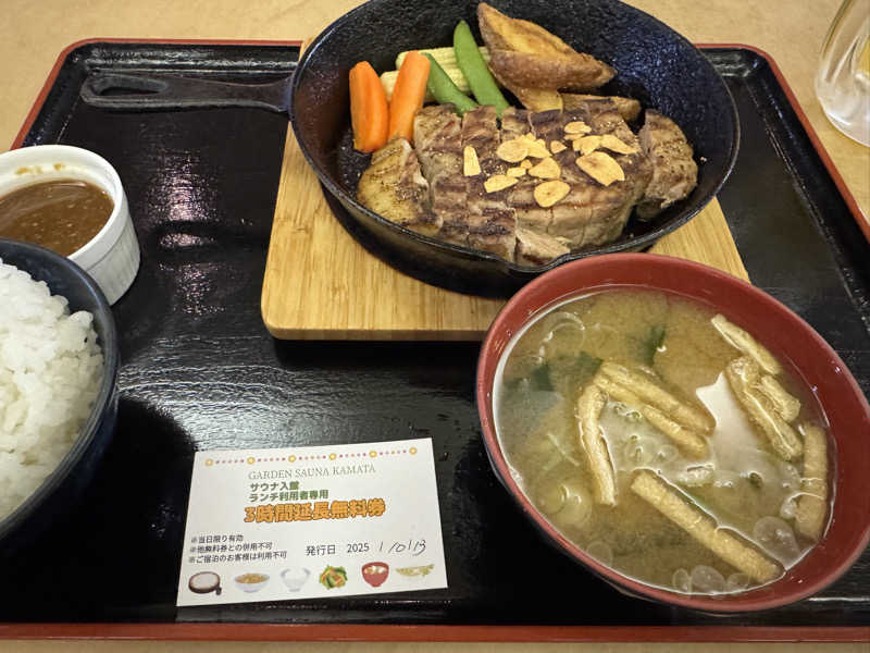 サウナとお風呂は基本熱い。個人的にはロウリュサウナ→ドライサウナ→水風呂20℃→水風呂30℃で続けた時はなんとも言えない気持ち良さがあった。そしてポークステーキ激うま。