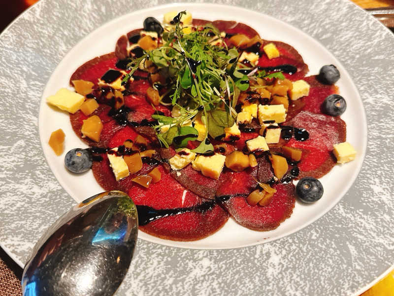 いろんな種類の盛り合わせとカルパッチョとサーモンのスープ