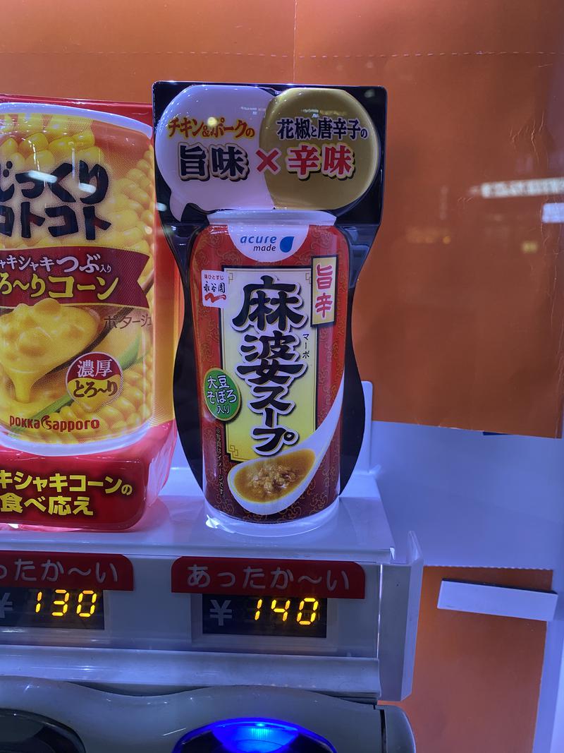 全く関係ありませんが都内の自動販売機で麻婆スープが売ってる!キニナル…チョット高い…
