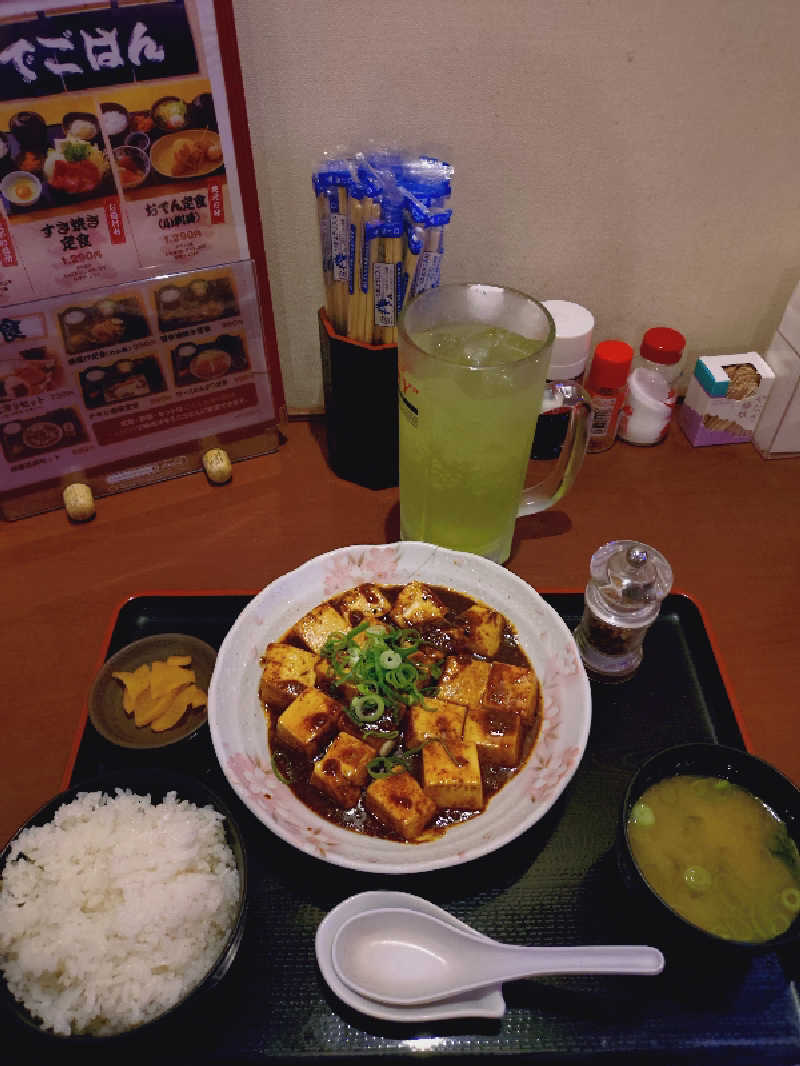 そしてすでに23時30分になっていましたが、晩ご飯を食べていなかったので、急ぎで麻婆豆腐定食とオロポを注文。自ら花椒をかけていくスタイルで辛さを調整できるのが良かったです。あっという間に美味しくいただき、逃げるようにカプセルへ!ではまた明日。