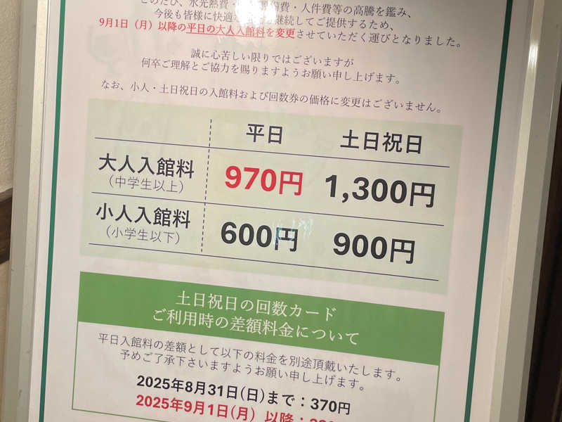 そして、ついに料金値上げされるようで、それでも23区内で天然温泉が1000円以下とは、、とても良心的に思います🙏ありがたいですな〜