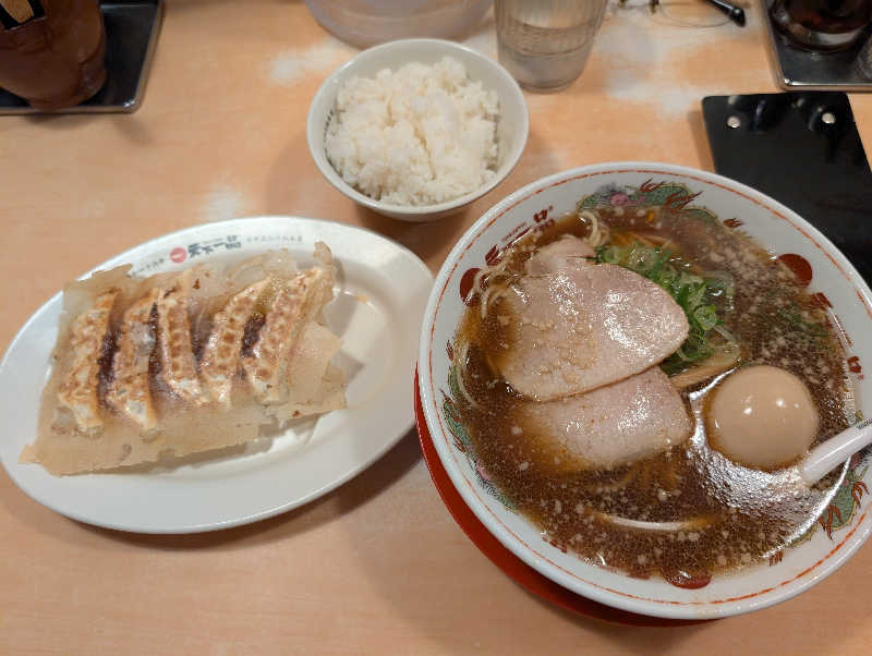 19時前にようやく解放されたが、まずは腹ごしらえに「天下一品」のラーメン餃子定食に手を出してしまう。でも、こってりではなく、あっさりにしてみた…笑