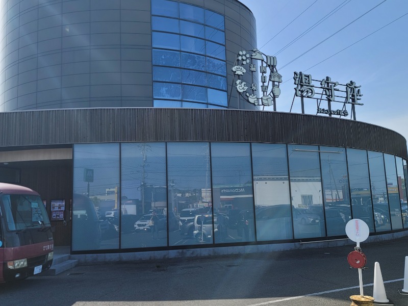 高山から南下しながらゆらんのシールを求めて銭湯(サウナ)をはしごと思ってたけど、かみほの湯へ到着すると、定休日の看板が。途方に暮れつつ、サウナのあるゆらん参加施設を探すと、こちらがヒット。まず、着くまでにも思った以上に施設見るまで不安になるぐらいの場所にある。でもそのおかげで、小高い場所からのお風呂はいい感じ。