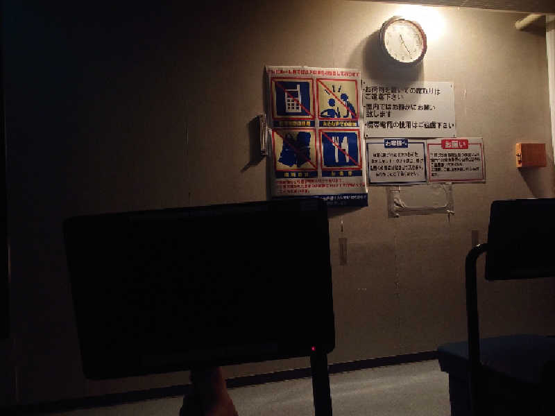 水風呂前の椅子で内気浴中のkおかさんとモトさんと偶然偶然😀