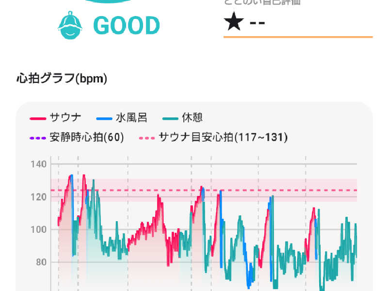 00分30分時の激熱オートロウリュウを最上段で楽しみ(即下段に避難しましたが)