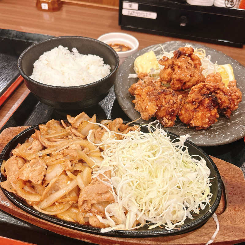 その後はご飯!生姜焼きか唐揚げか。決めれないから両方いっちゃえ🤣ビールもいただき腹パン幸せ。
