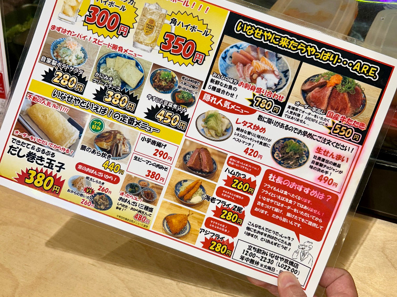 いなせや京橋店さんのメニューが新しくなってた。疲れてたから、中瓶がマッハで消えました❤️最高ッ!めちゃめちゃフニャフニャになったなぁ。