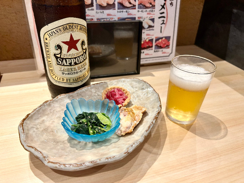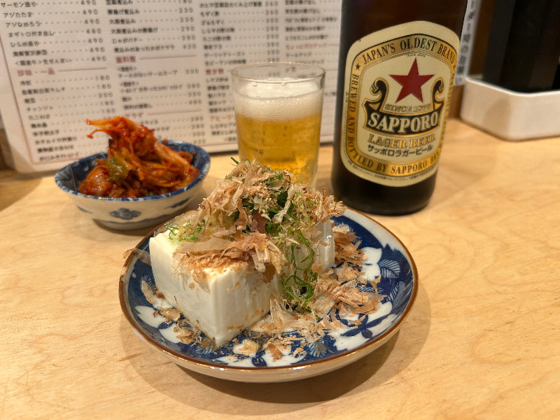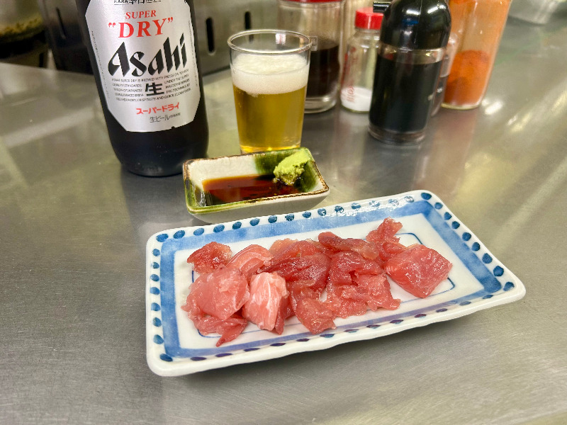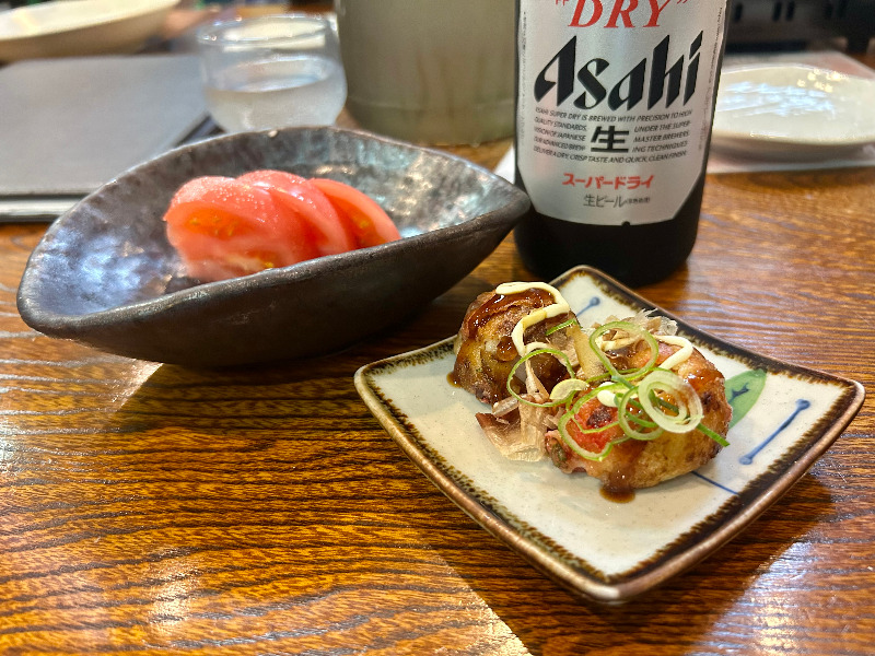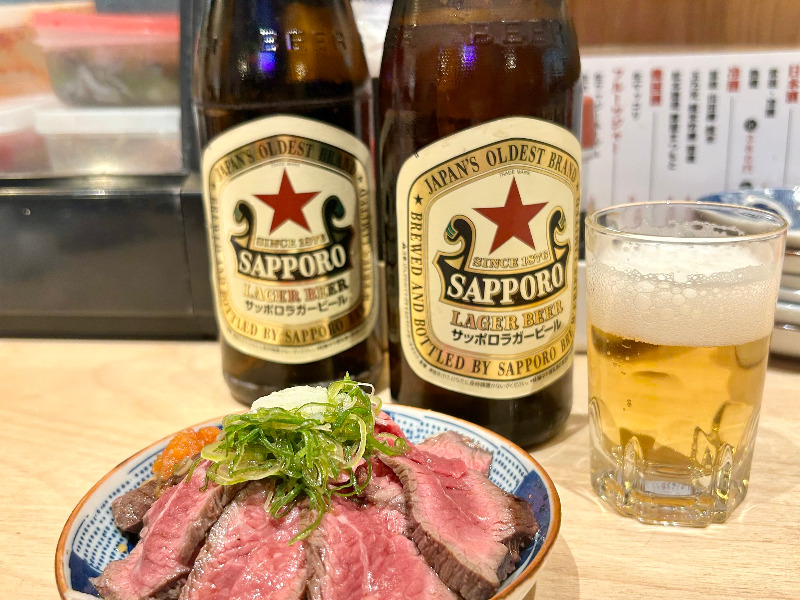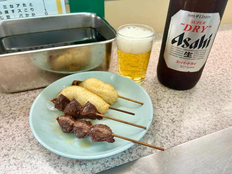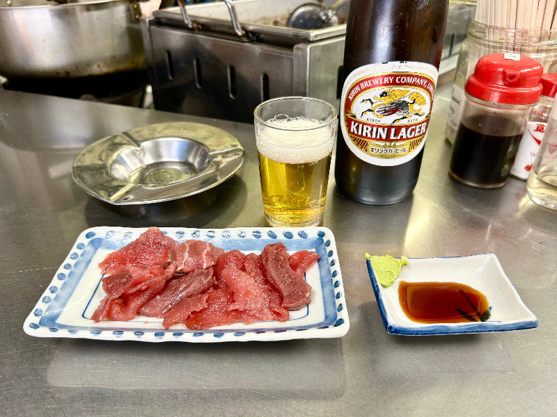 岩田屋酒店で大瓶+まぐろすきみ・ホルモンマルフクで大瓶+ホルモン+牛ハラミ+オニオンスライス・スタンド八とり本店で赤星+鳥焼肉っ!