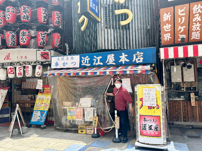 仕上げに「串カツ近江屋」平日だけど、開店前から並びが発生している。