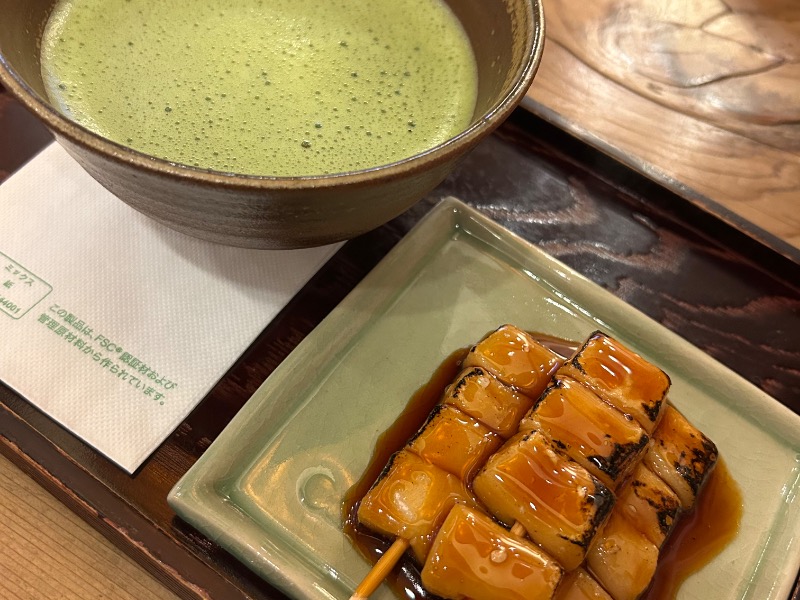 サ前のおやつで抹茶とみたらし団子!たまにはいいやん!