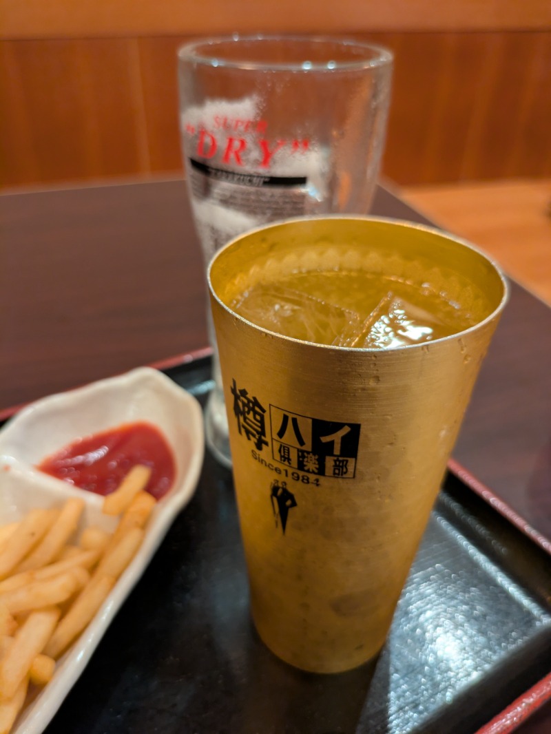 唐揚げとポテトのおつまみセットのビールを一気飲みしてしまったのでレモンサワーおかわりです😊