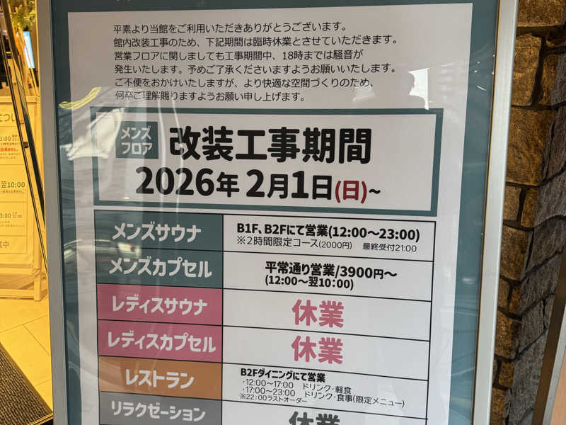 現在男性サウナが改装中の為、