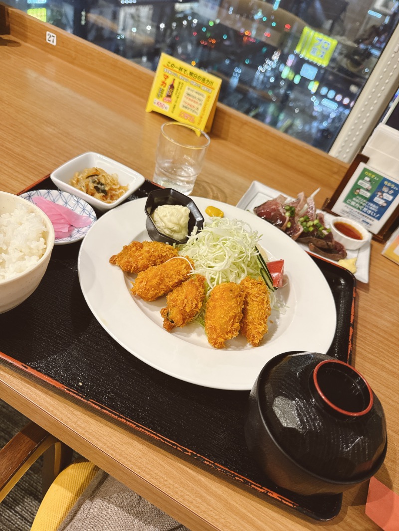 カツオのたたきも。味噌汁にアサリが入ってて美味い!普段の定食もアサリ入ったのかな?