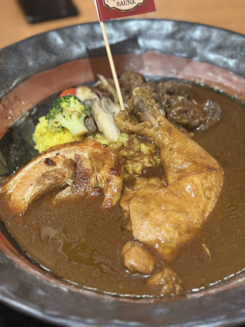 サウナぶ〜No.372Kおかです。今夜のアウフグースは鈴木陸さん、浴室に入ってすぐにマネジャーに18時の回空いてますよって誘われ、ぷくさんと18時の回と19時半の回を予約、21時も取ってあったから結局昨日かイベントフル参戦です。中野Dに聞くと彼は凄いよ〜、なんたって昨日優勝🏆決めて来たからねって!これは楽しみ♪洗体もそこそこすぐに1本目スタートです。おお〜!スゴイテクニックです。タオルの中に鉄板でも仕込んでるかの如く四角いタオルの形が崩れません、そして何より音楽とシンクロした仰ぎ!タオルの音と風の音がまさしく楽器ですよ🎵ロウリュの蒸気まで音として奏でるなんてまさにアウフグースミュージシャン🎸いや〜スゴイの頂いちゃいました。お風呂でくつろいでいるとに山ちゃん登場!次の回まで水素で待機です。さてそろそろとサウナに向かうと、あれ?わぎちんさん?あらあら昨日から続く地元熱波師登場です。一緒に2発目、まだ空きがありそうなので花屋さんも誘って入場!さっきの回より激しい演出で狭いべっぴんサウナの中で縦横無尽、やりますね〜音楽に合わせ踊る姿はもはやステージ!カッコイイ〜これは21時の回も更に楽しみになりました♪ここでぷくさん山ちゃんと食事に、出がけに熱波師やぎさんともばったり、プロのアウフギーサーも大集合ですね、今夜は男前カレー!ご飯減らして貰いましたがガッツリ腹パンです。さて21時回、いつのまにかマントさんも来てましたね、最終回は更に激しく、3本目のBGMはなんと松本ぼんぼん!コイツは盛り上がりました。熱波も鈴木さんが倒れるまでガンガンに!いや〜楽しかった〜!