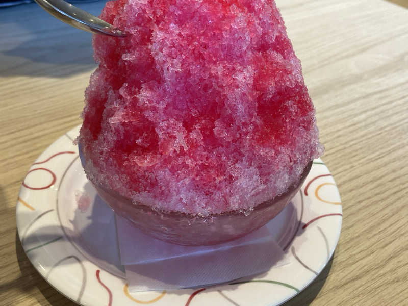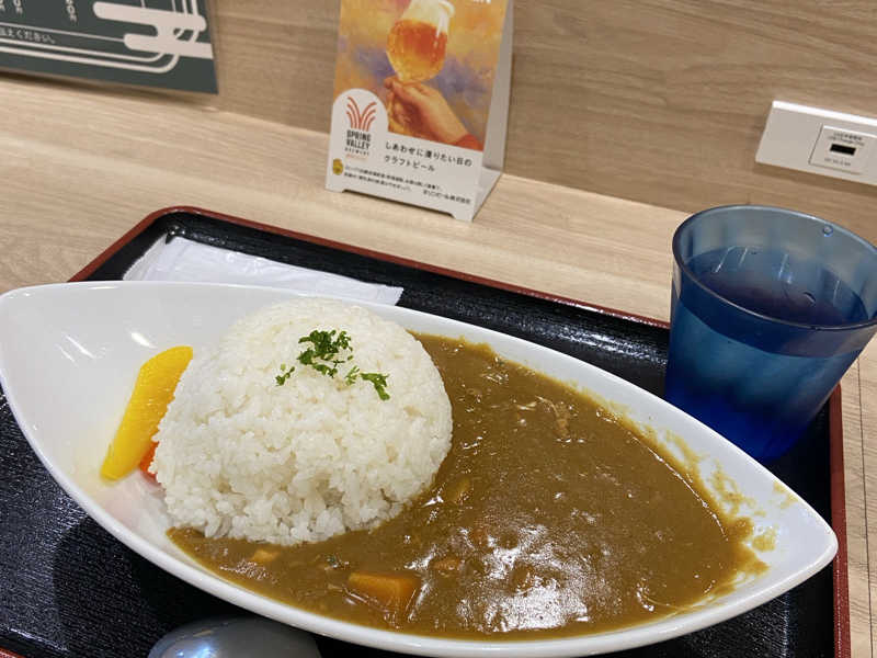 美味しそうなメニューがたくさん。今回はオススメのカレーうどんセットを注文😋サウナで熱った身体にかき氷🍧が染み渡る😋